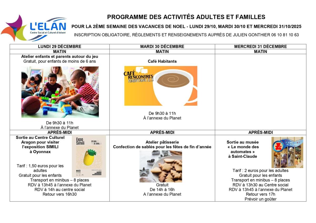 CENTRE SOCIAL & CULTUREL L'ELAN : accueil vacances de Noël