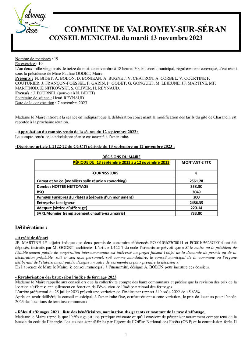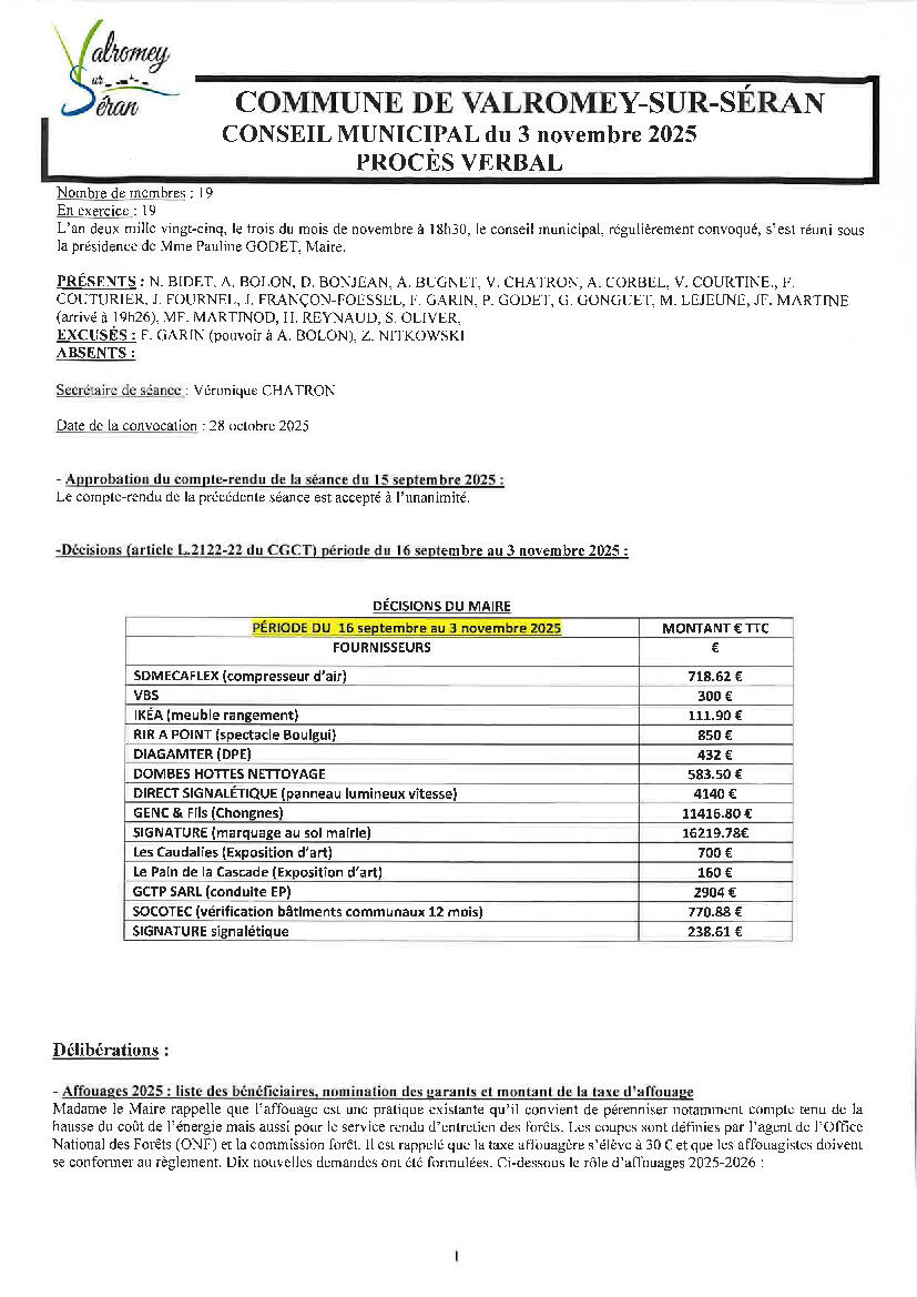 Procès verbal du conseil municipal du 3 novembre 2025