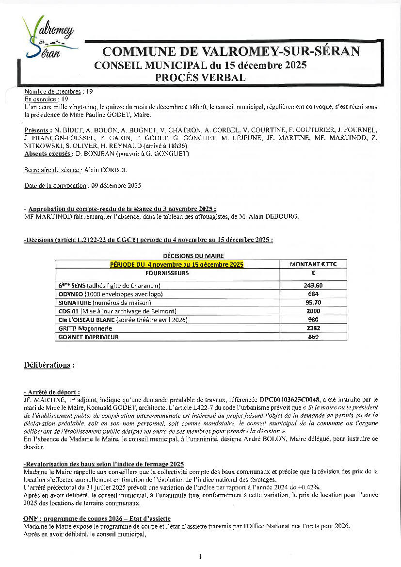 Compte-rendu du conseil du 15 décembre 2025