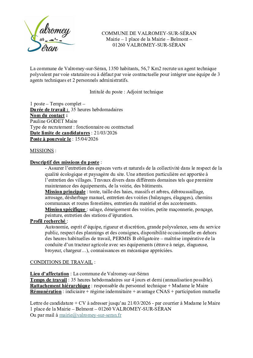 News of Mairie de Valromey-sur-Séran