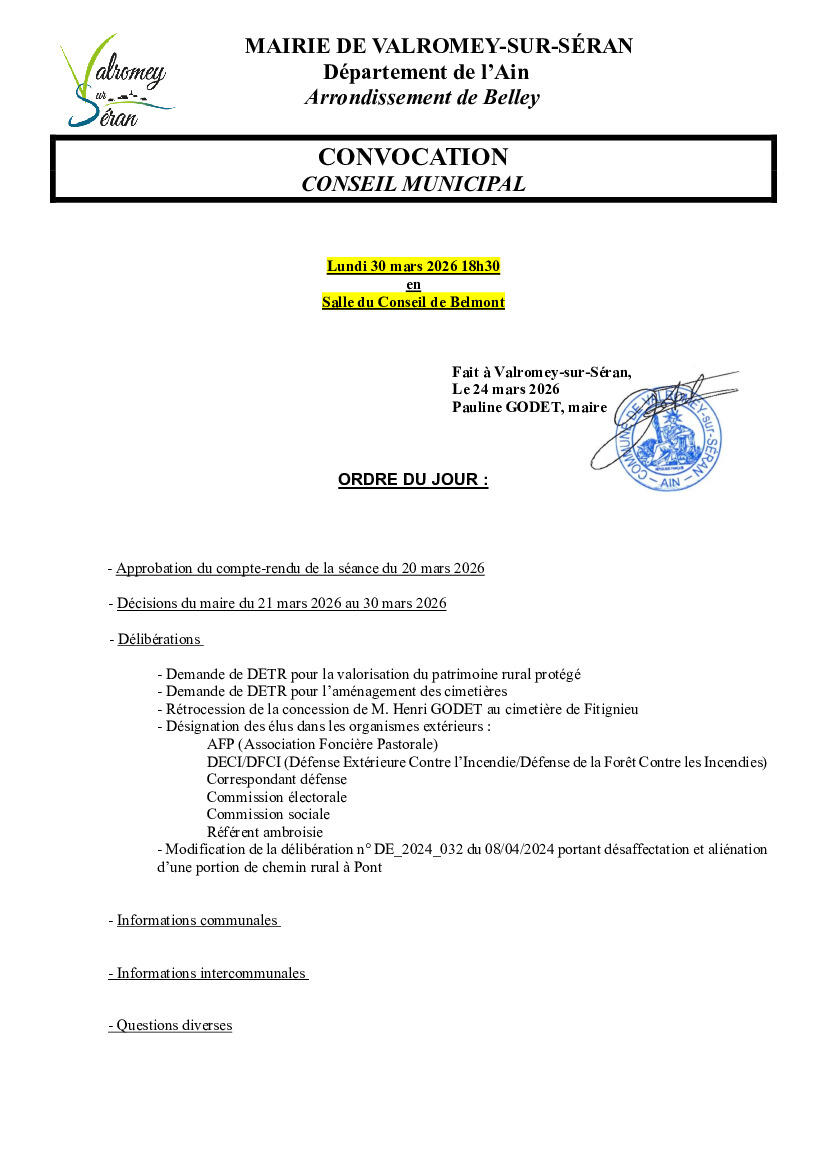 Prochain conseil municipal: ordre du jour 3/24/26 Le prochain conseil municipal aura lieu le lundi 30 mars à 18h30: