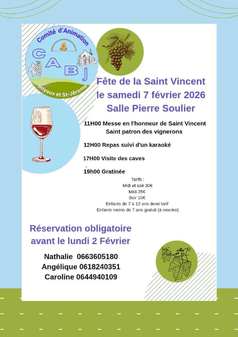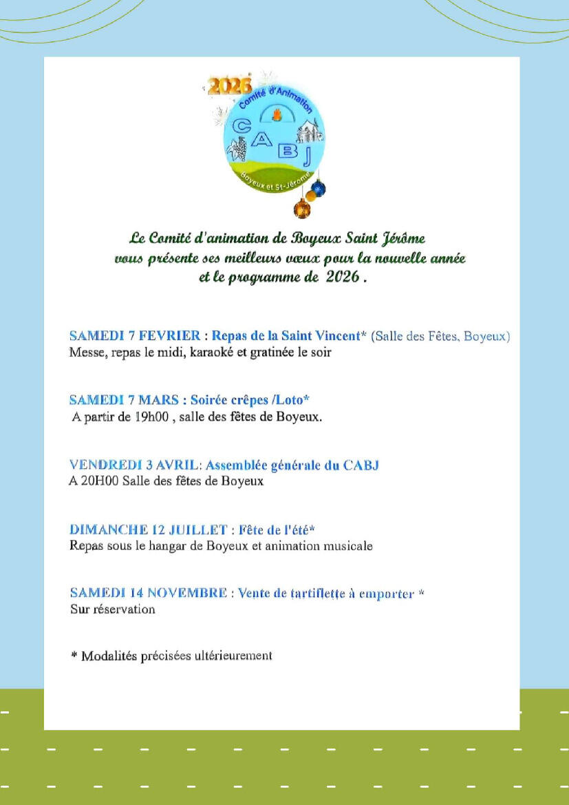 PROGRAMME 2026 DU COMITE D' ANIMATION DE BOYEUX ST JEROME
