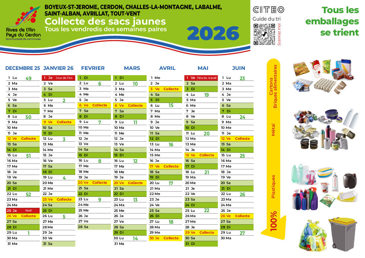COLLECTE DES SACS JAUNES DEMAIN MATIN, VENDREDI 20 FEVRIER.
