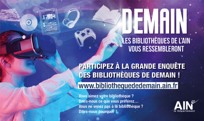 Parce que les bibliothèques ont considérablement évolué ces dernières années pour s'adapter aux nouvelles pratiques culturelles et aux nouveaux enjeux de société, le Département de l'Ain lance une grande enquête pour connaître vos désirs et vos besoins.