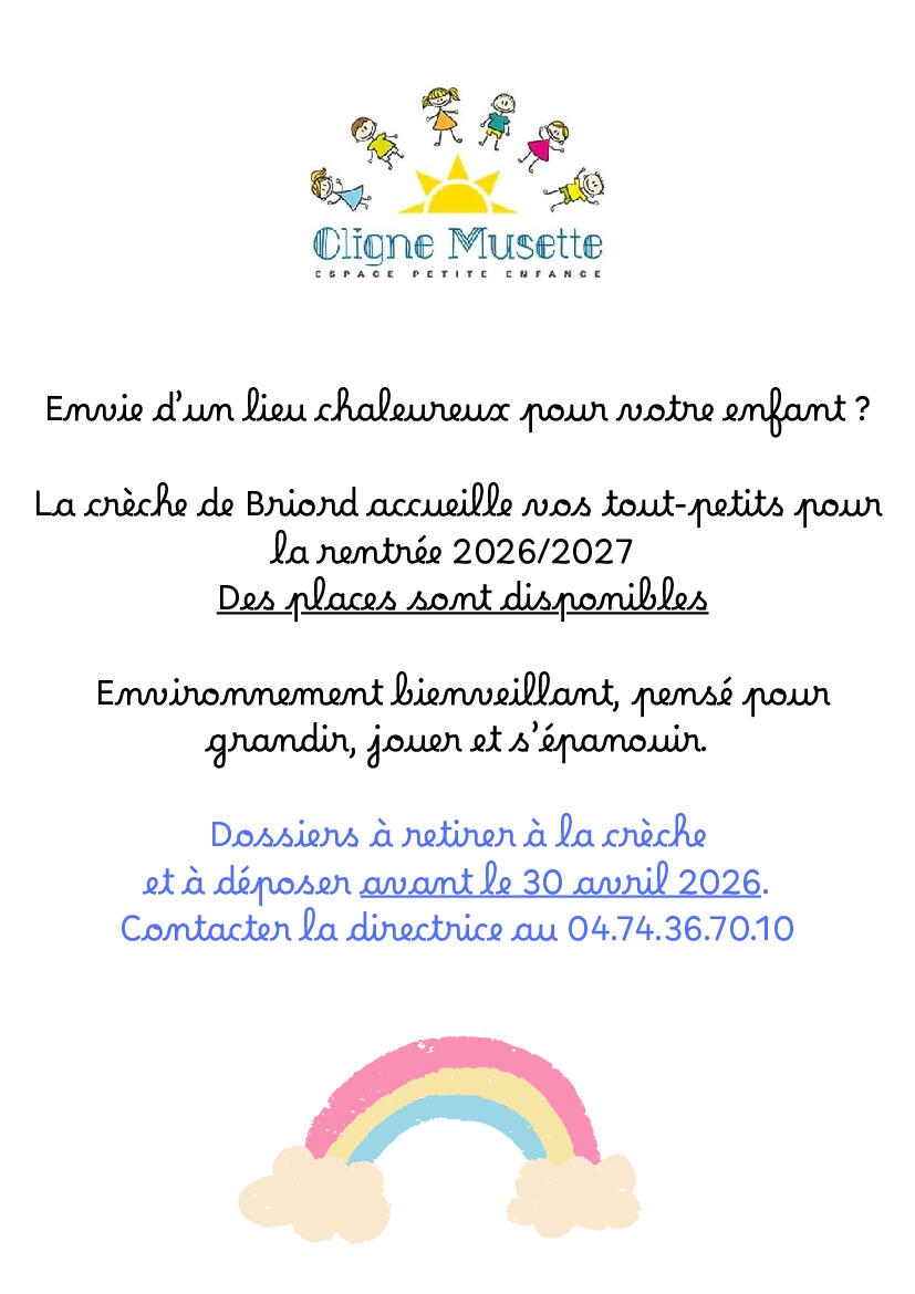 CRECHE DE BRIORD - LES INSCRIPTIONS 2026/2027 SONT OUVERTES