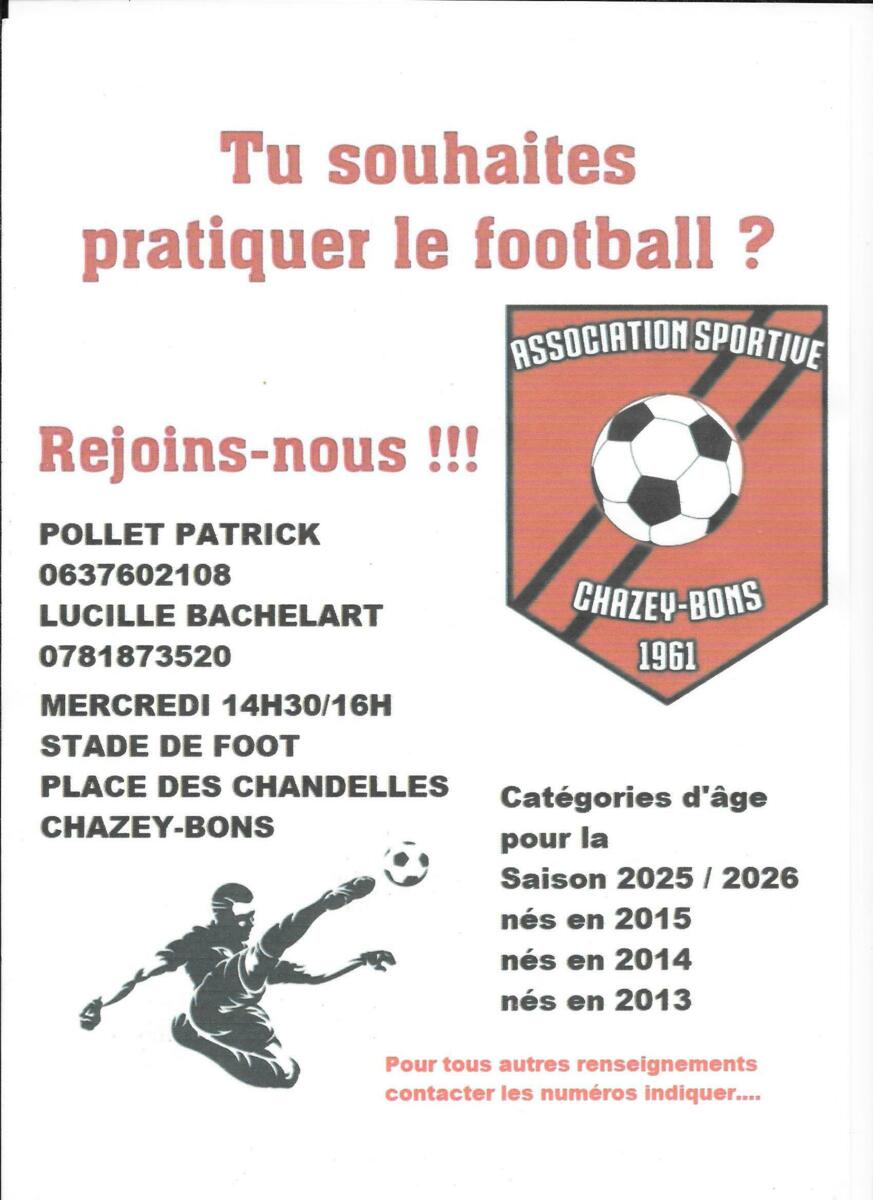 l'AS Foot de Chazey-Bons vous informe de la reprise de son école de football.
