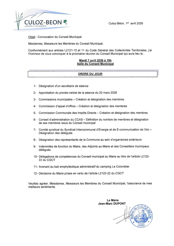 / Prochaine séance du Conseil municipal 7 avril 19h