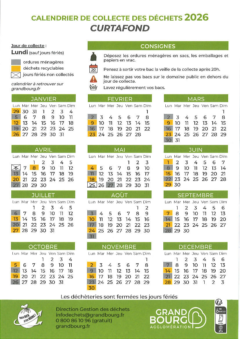 Calendrier de collecte des déchets 2026