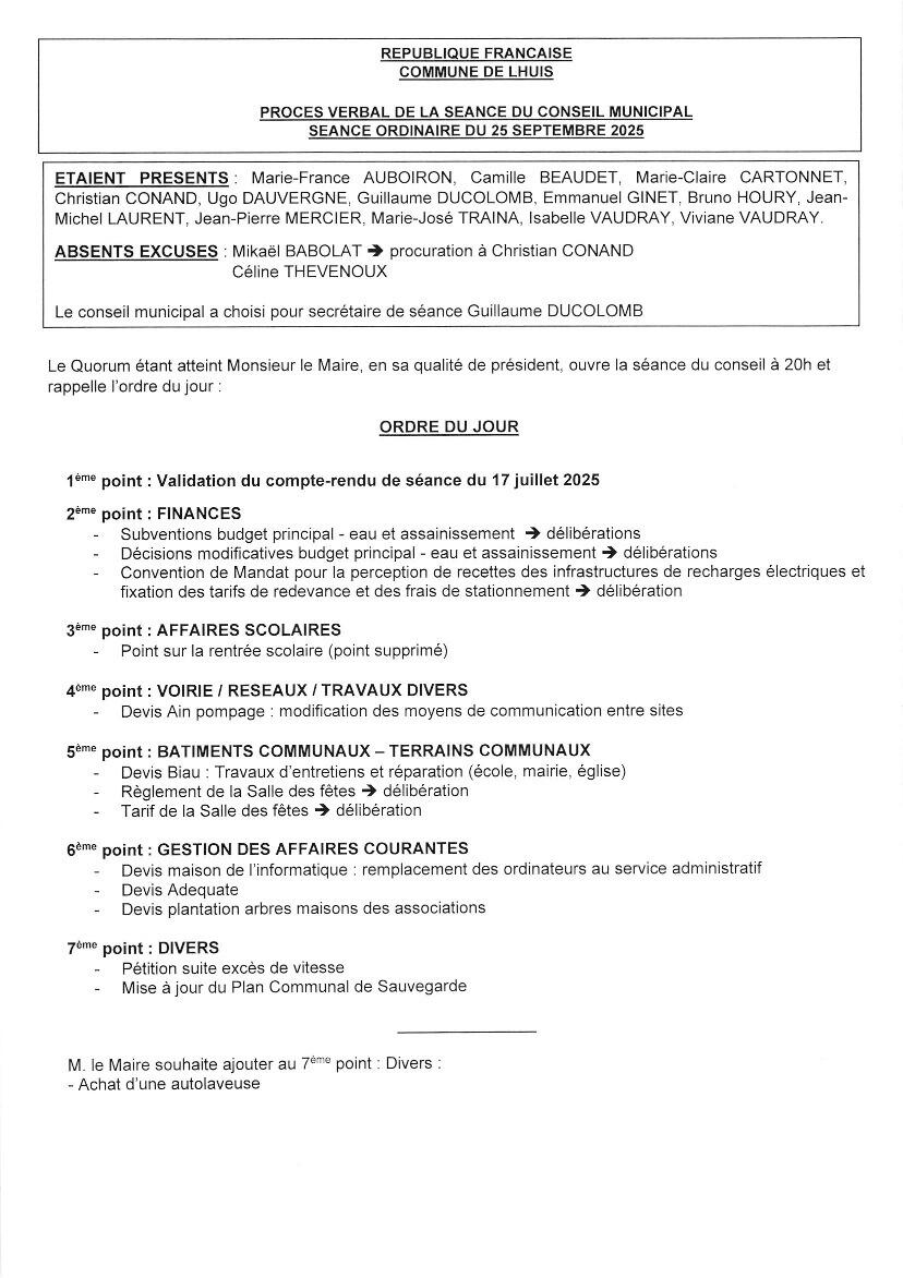 Procès-verbal du conseil municipal du 25 septembre 2025