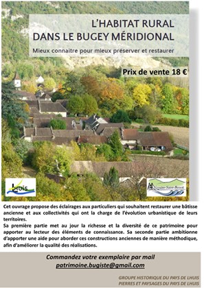 « Les associations « Le Groupe Historique du Pays de Lhuis » et « Pierres et Paysages du Pays de Lhuis » ont le plaisir de vous convier à la soirée de lancement de la réédition de l’ouvrage « L’Habitat Rural dans le Bugey Méridional ».