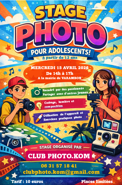 Le club photo de Varambon "Club Photo.KOM" organise un stage photo pour les adolescents durant les vacances de Pâques le mercredi 15 avril.