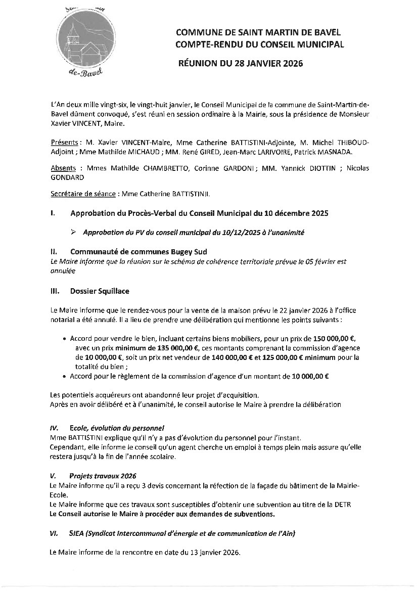 Compte rendu du Conseil municipal du28 JANVIER 2026