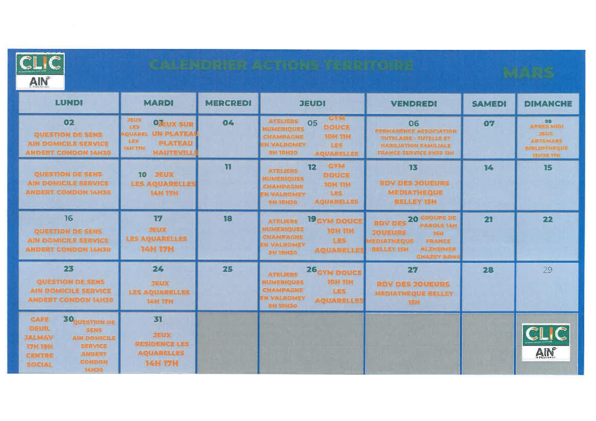 Calendrier ACTIONS TERRITOIRE MARS 26