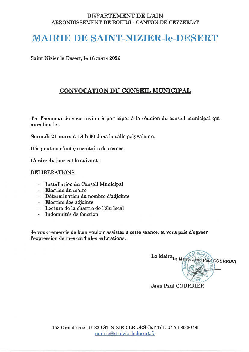 Your town hall / News / REUNION DE CONSEIL MUNICIPAL