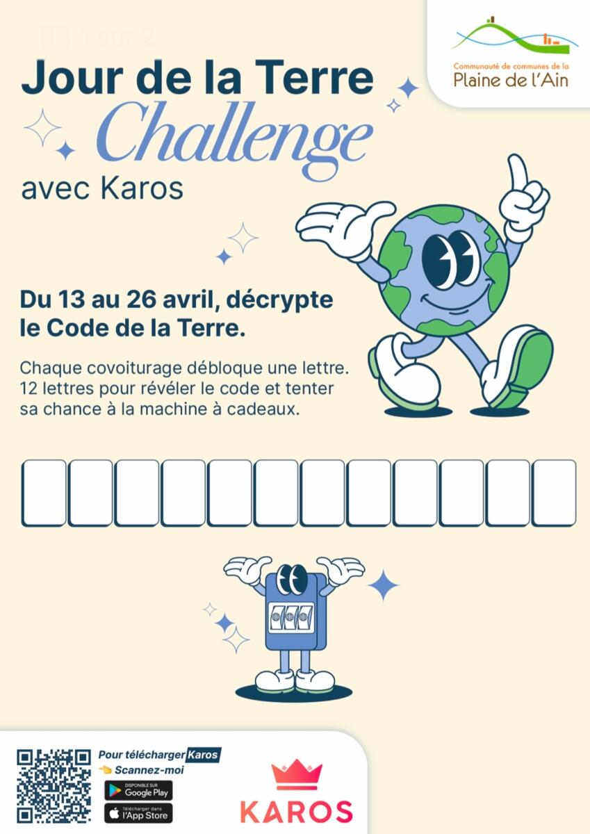 À l’occasion du Jour de la Terre, un challenge covoiturage arrive bientôt dans l’application « en covoit’ Plaine de l’Ain »opérée par Karos.