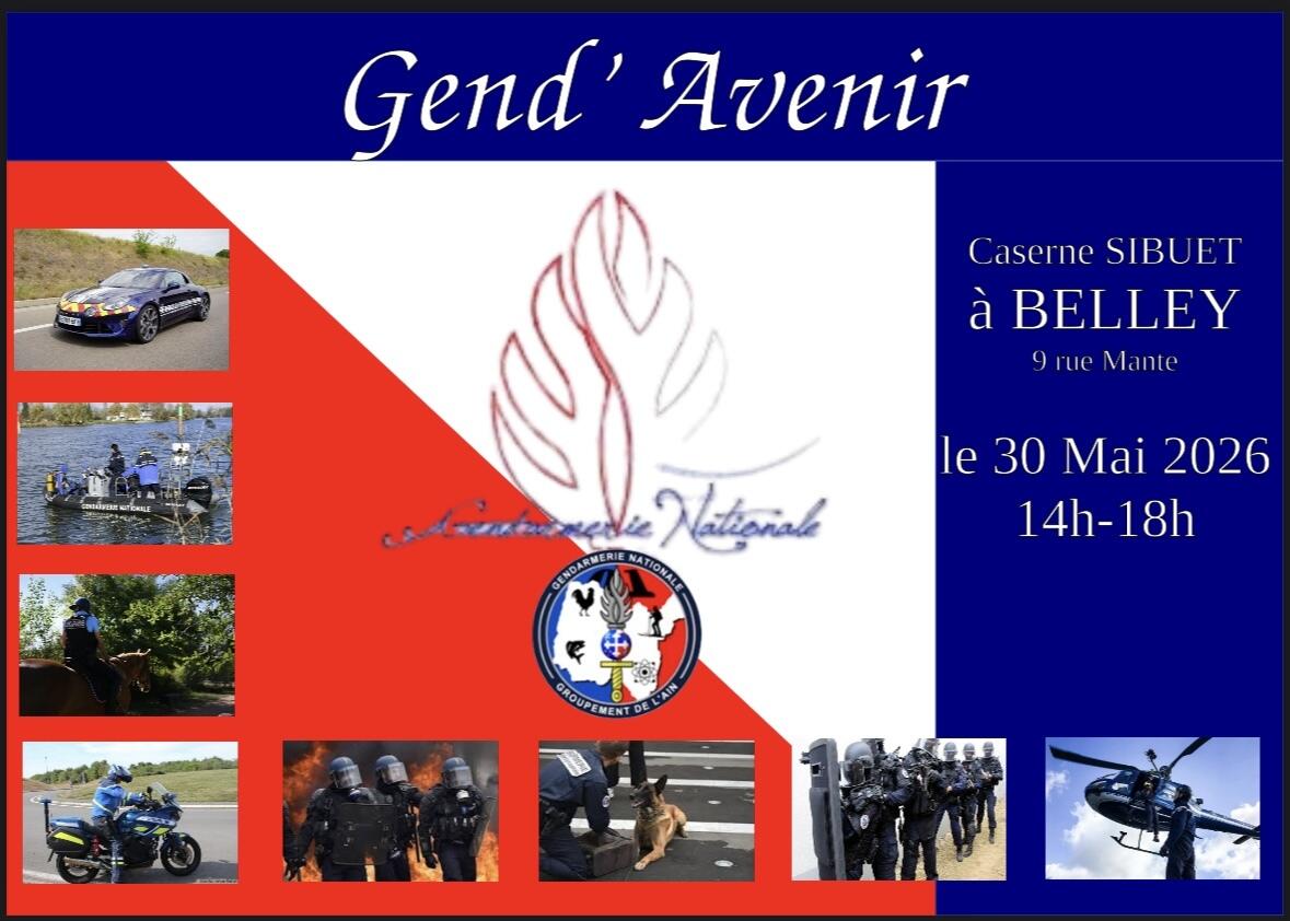 Journée GEND'AVENIR qui se déroulera à BELLEY le 30 mai 2026 à la Caserne SIBUET (Gendarmerie) au 09 rue Mante à BELLEY.