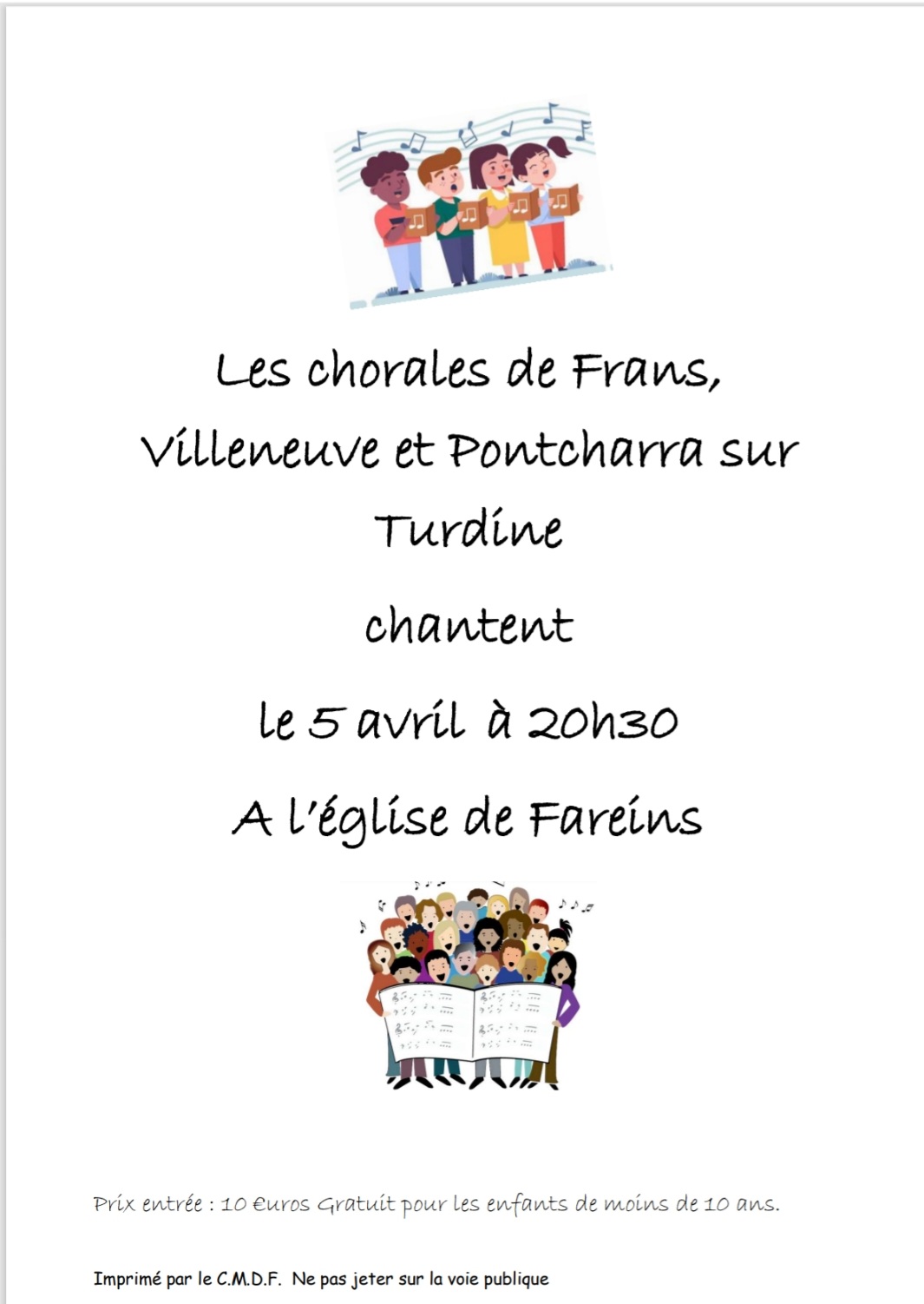Concert à l'église de FAREINS avec les chorales de Frans,  Pontcharra-sur-Turdine et Villeneuve (Le Chœur des VilleneuVOIX)