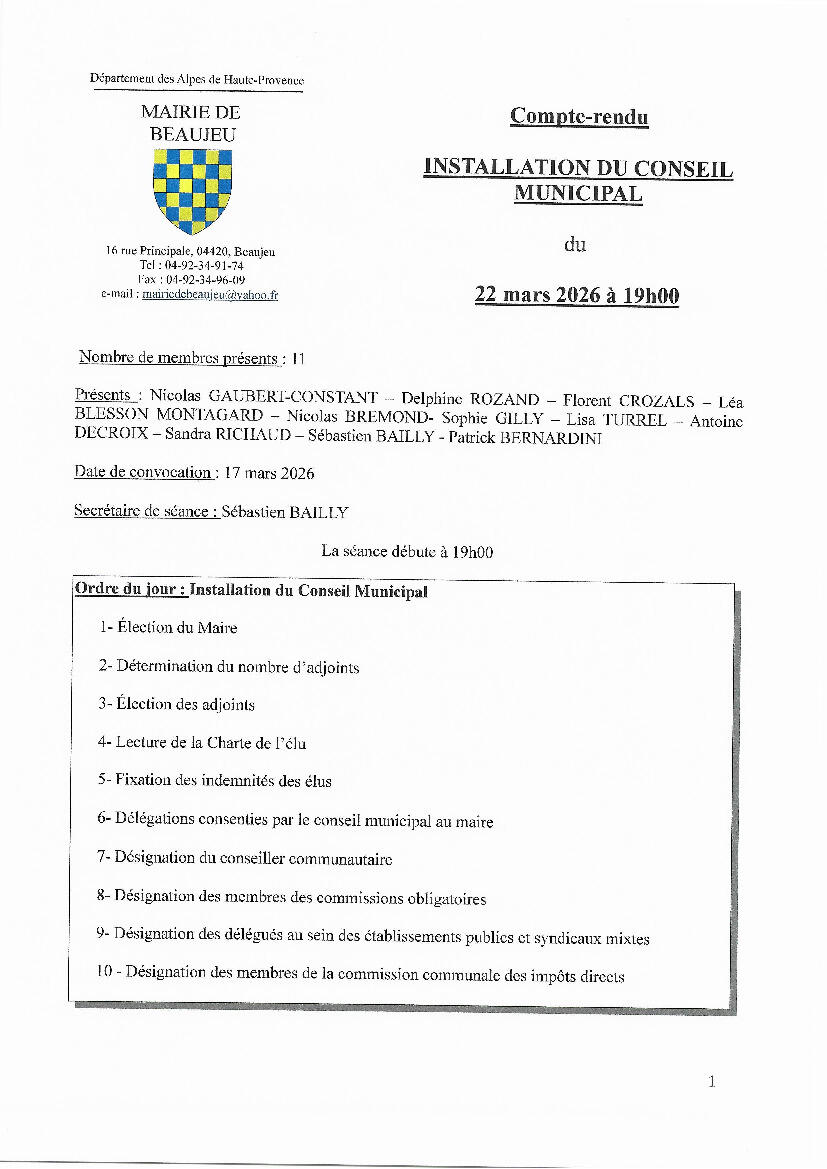 📌 Compte-Rendu Conseil Municipal du 22 mars 2026