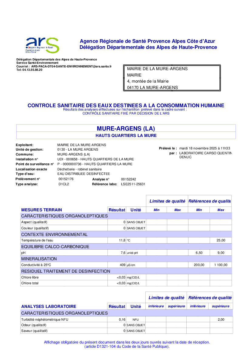 🚰 Information importante : Qualité de l’eau💧Village Argens