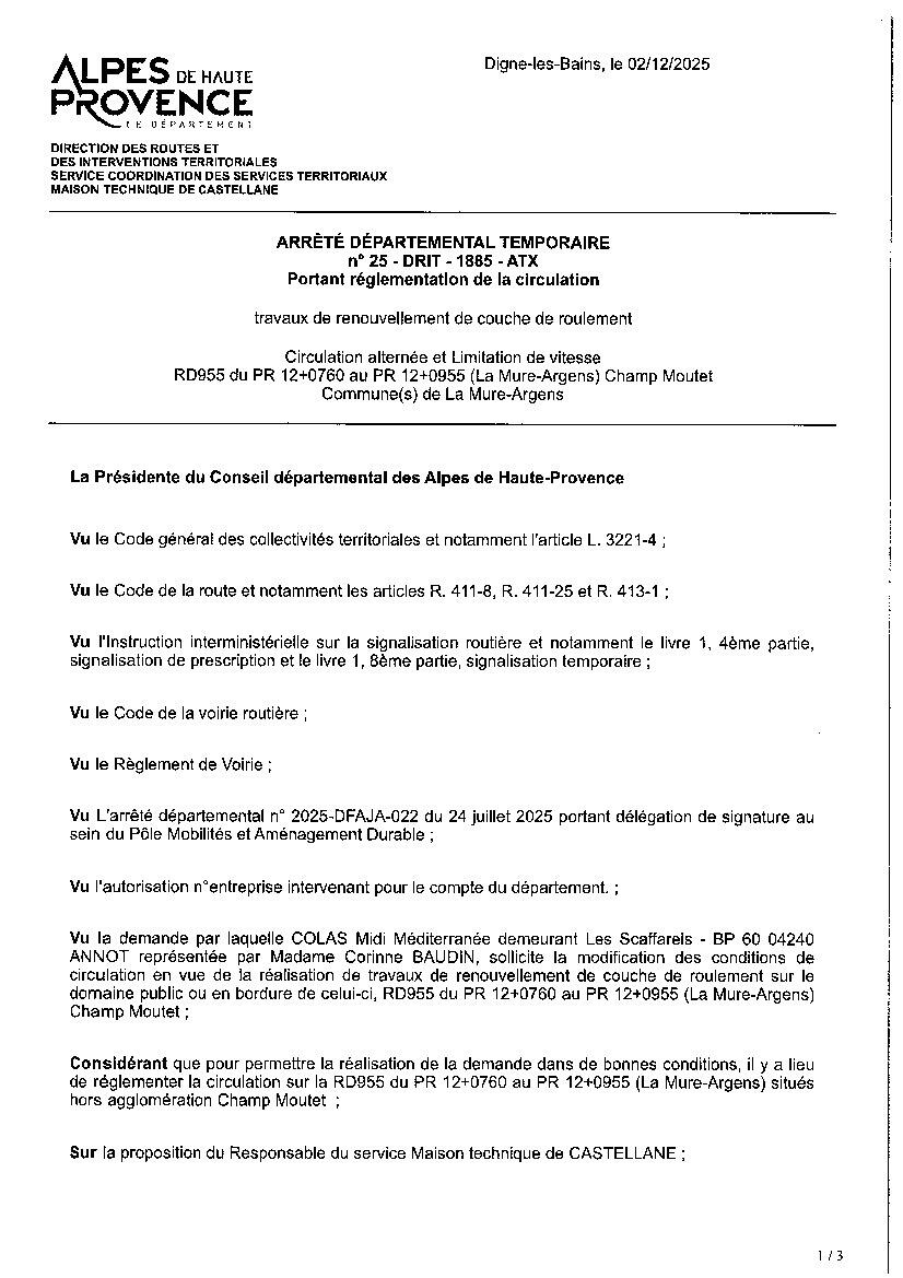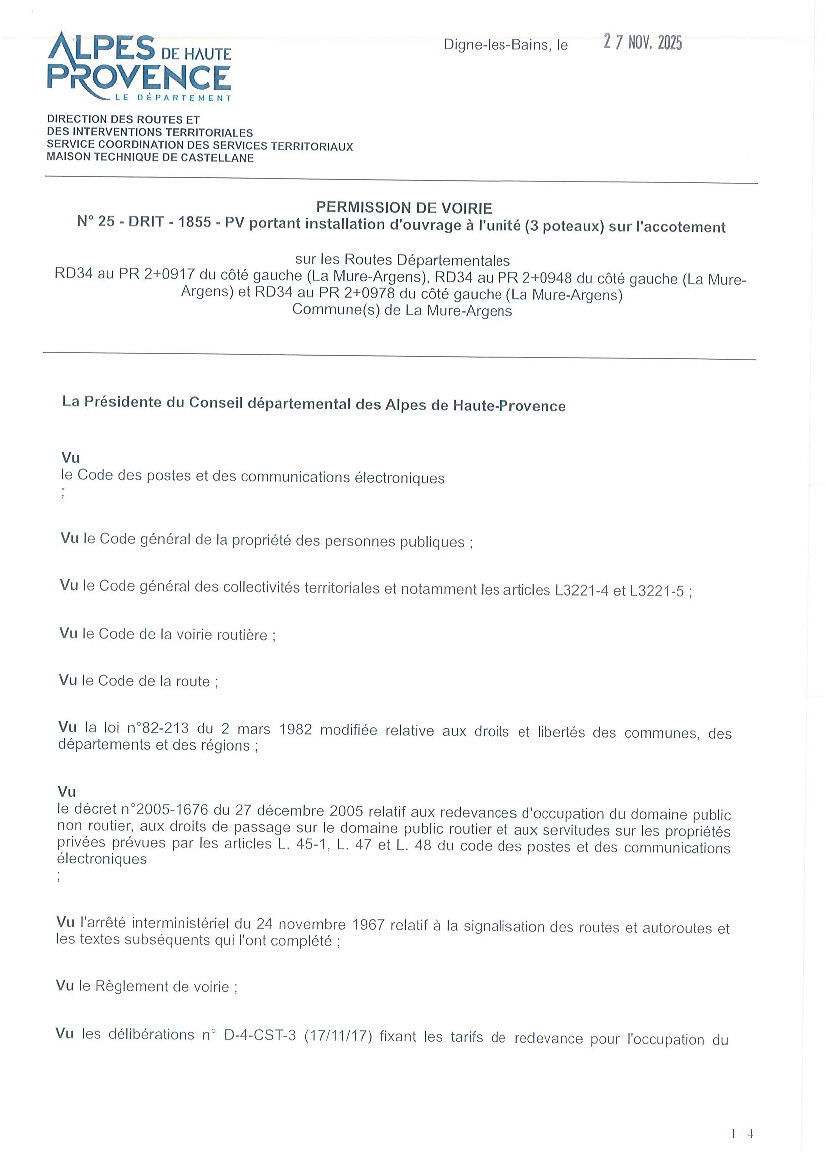 Transmission de l'arrêté temporaire n° 2025-DRIT-1740TRAVAUX