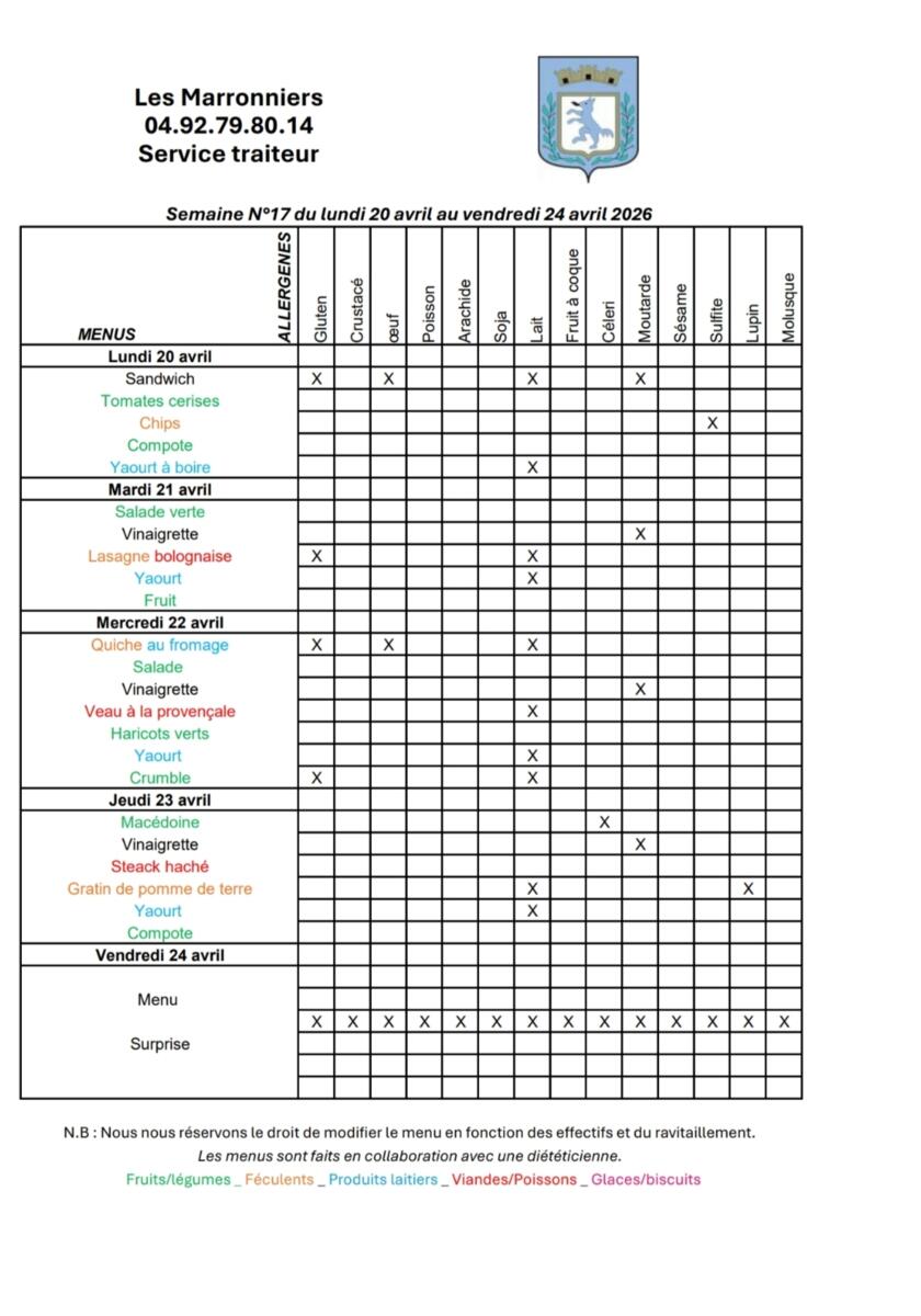 Menus cantine semaine 17
