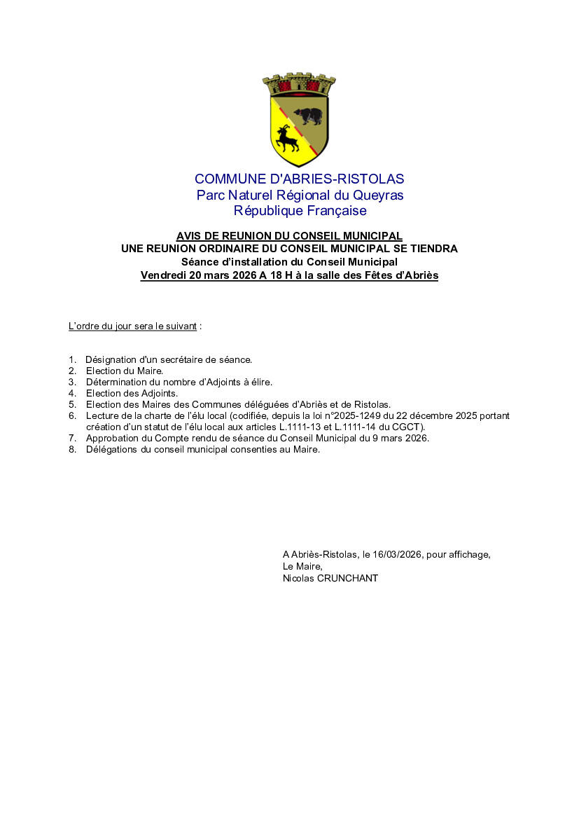 Your town hall / Agenda / Conseil municipal - Séance d’installation du Conseil Municipal - Salle des fêtes