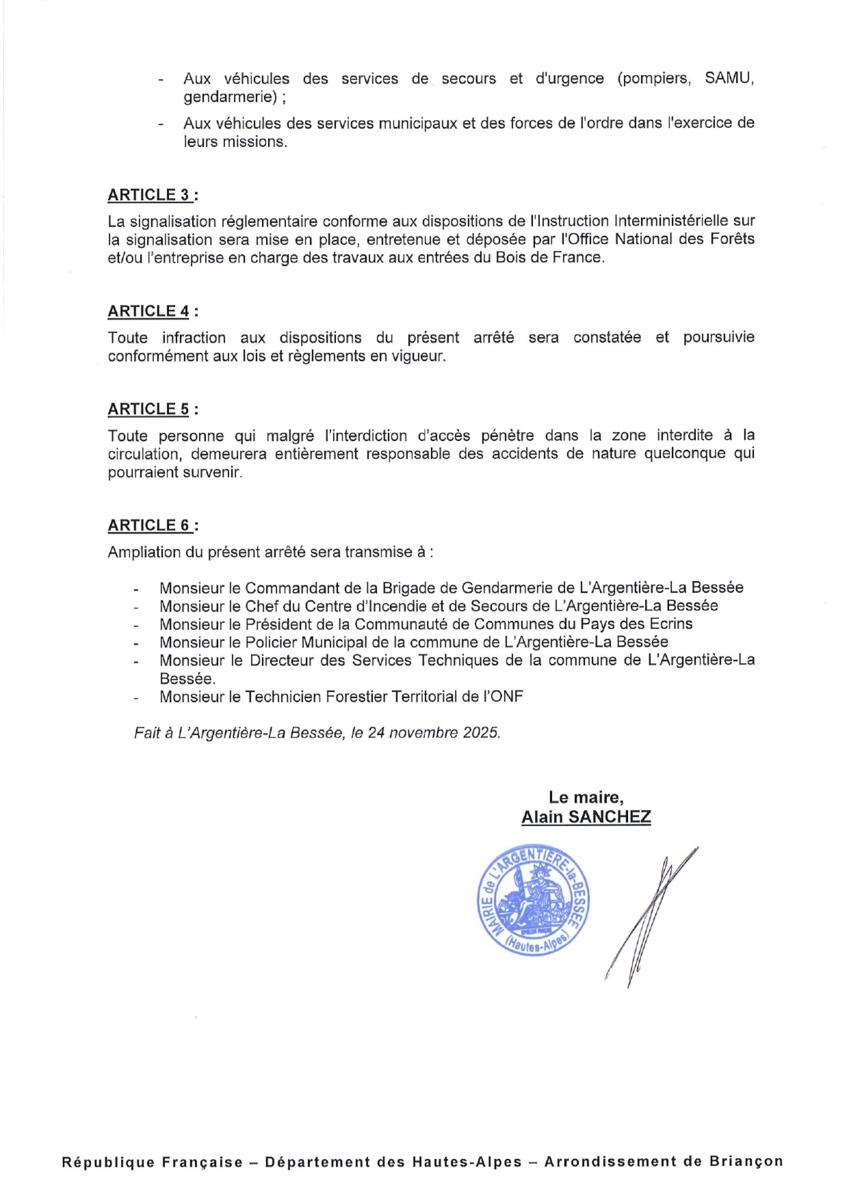 Le site est donc désormais interdit à toute circulation jusqu'au vendredi 5 décembre 2025 inclus.