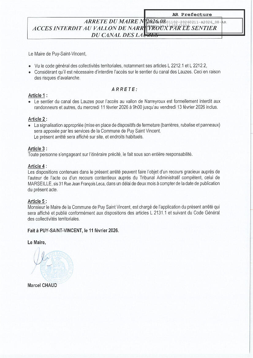 Your town hall / News / ACCES INTERDIT VALLON DE NARREYROUX