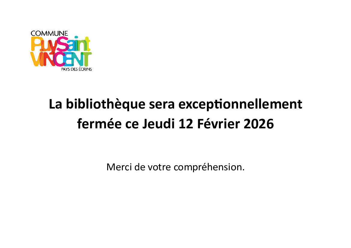 Your town hall / News / BIBLIOTHEQUE FERMÉE CE JEUDI 12 FÉVRIER