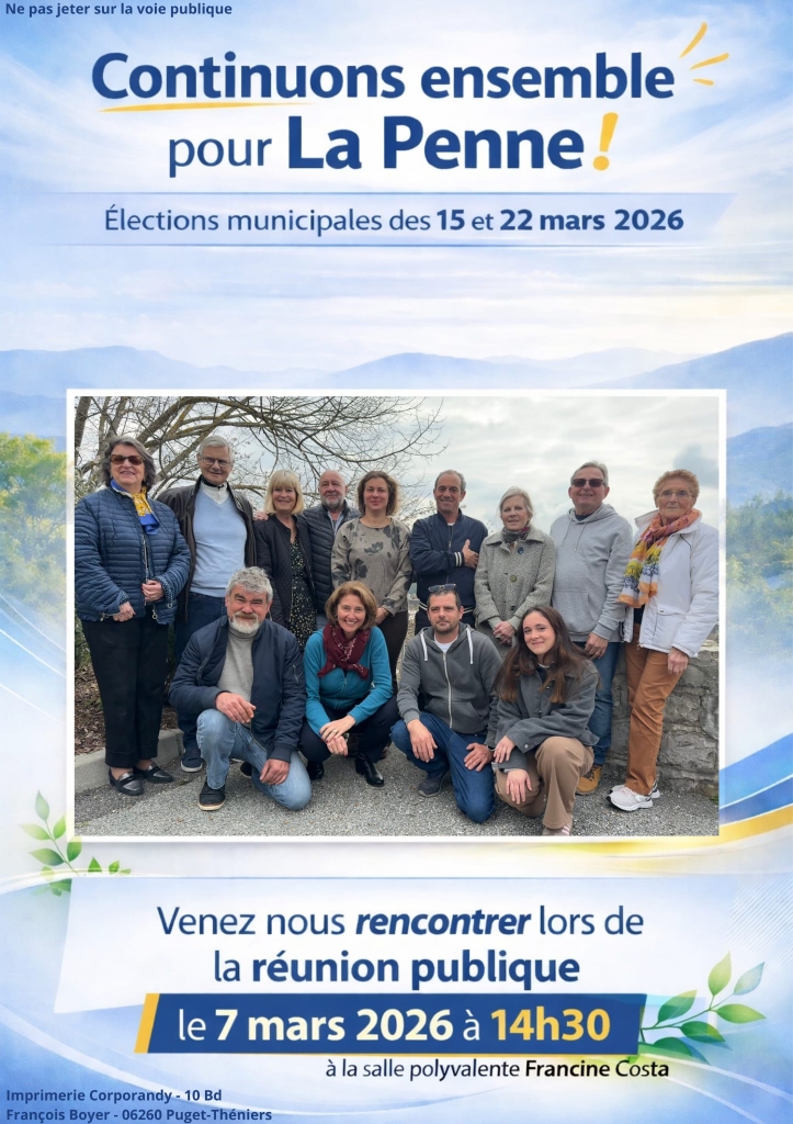 L’article ELECTIONS MUNICIPALES – Réunion d’information – Samedi 7 mars 2026 à 14 h 30 – Salle Francine COSTA est apparu en premier sur La Penne 06.
