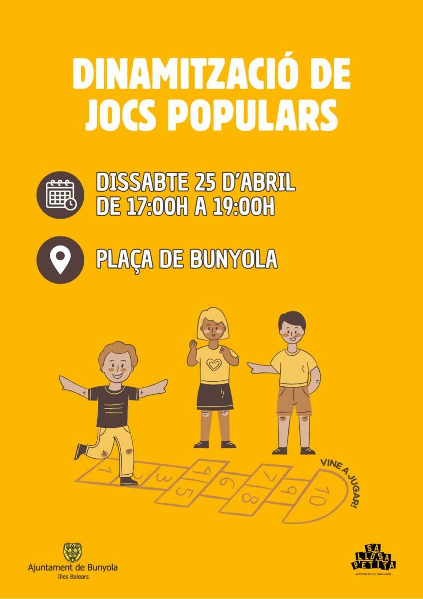 De 17 a 19 h, els m茅s petits (i no tan petits) podran gaudir de la dinamitzaci贸 de jocs populars, una proposta per tornar a jugar com abans, riure i omplir la pla莽a de moviment.