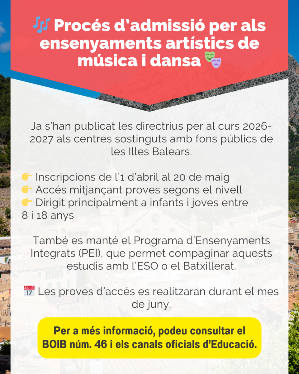 Per a mĂ©s informaciĂł, podeu consultar el BOIB nĂșm. 46 9 d'abril de 2026 Fascicle 91 - Sec. II. - Pag.18095