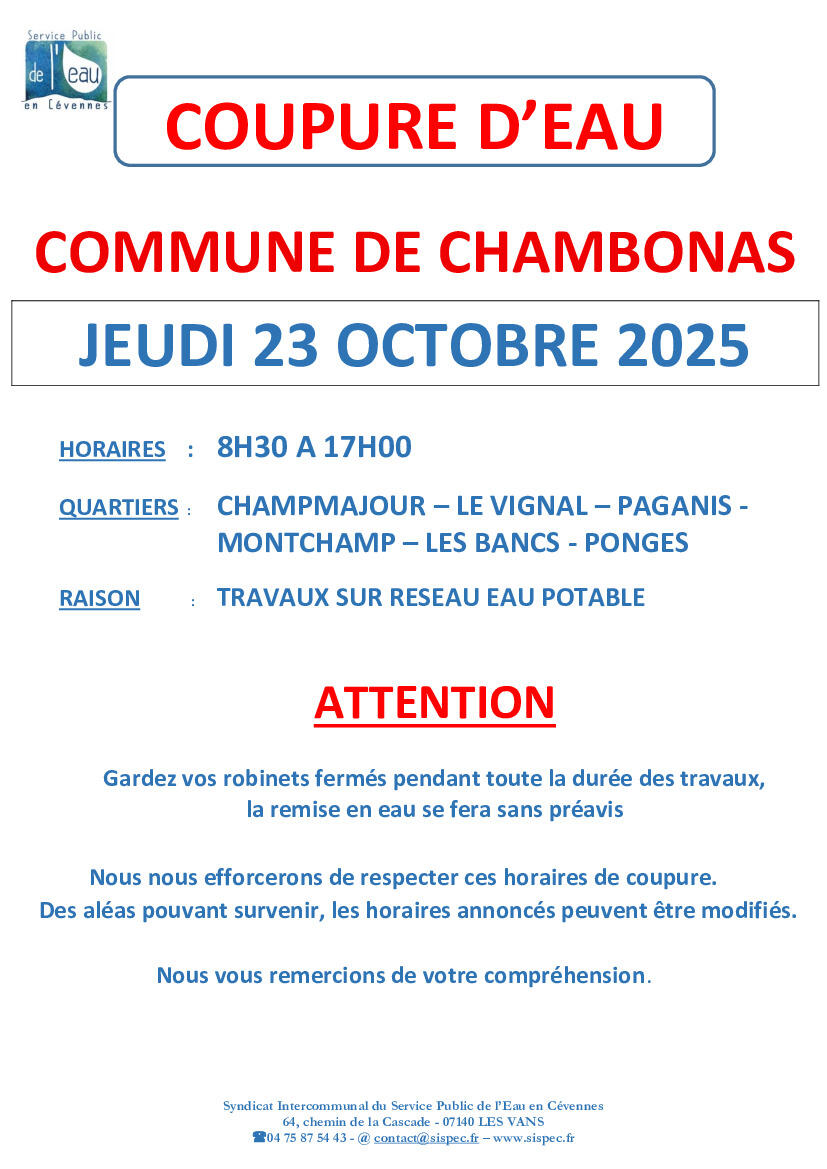 Coupure d'eau Chambonas