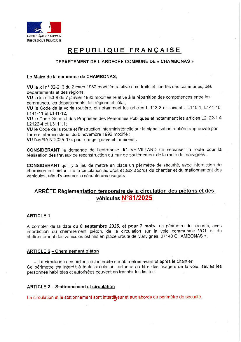 TRAVAUX "ROUTE DE MARVIGNES"