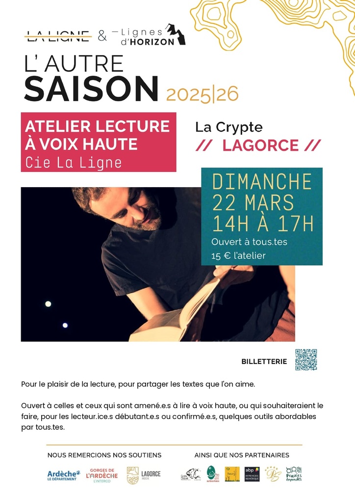 Ouvert à celles et ceux qui sont amené.e.s à lire à voix haute, ou qui souhaiteraient le faire, pour les lecteur.ice.s débutant.e.s ou confirmé.e.s, quelques outils abordables par tous.tes. 15€. Infos et réservations : https://www.compagnielaligne.com/l-autre-saison/atelier-lecture-%C3%A0-voix-haute