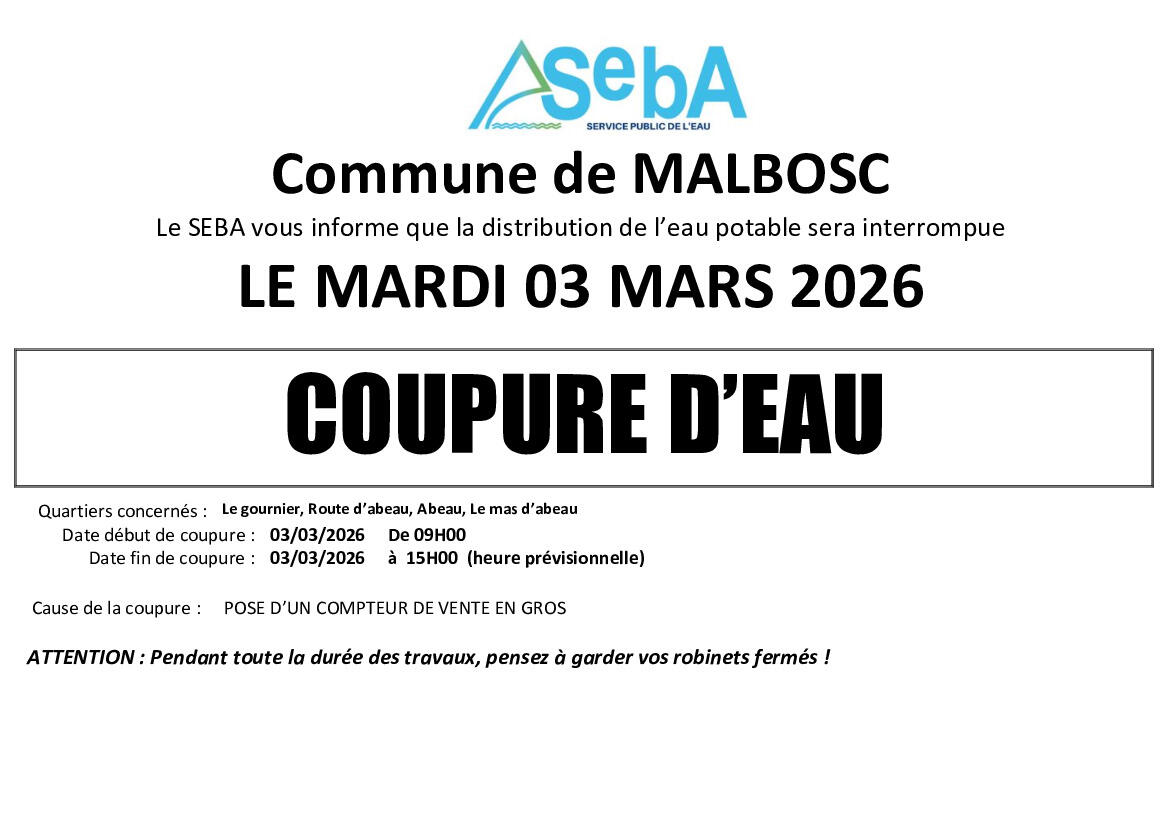 💧 SEBA - Avis de coupure d'eau