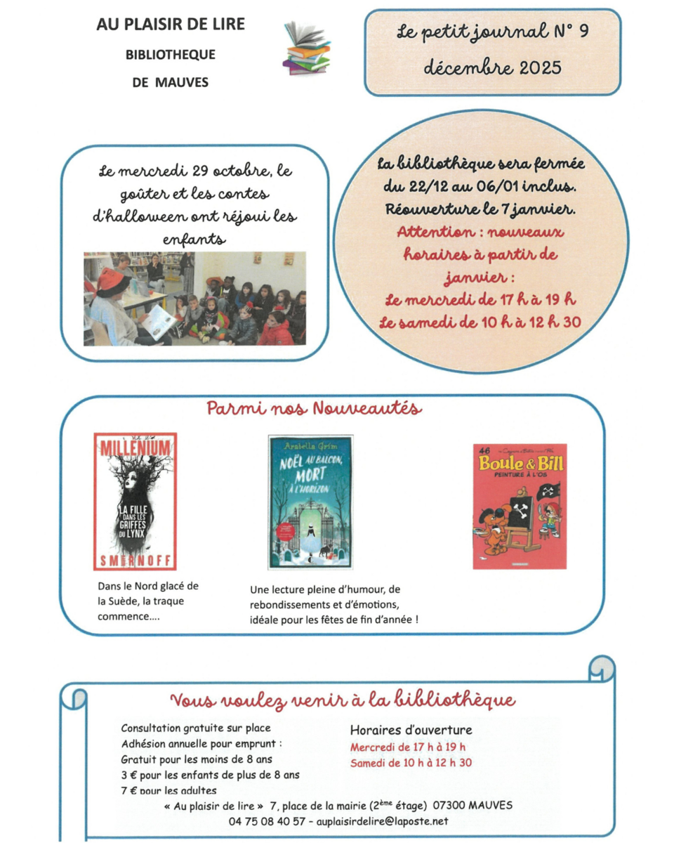Attention aux jours de fermeture de la bibliothèque pendant les fêtes.