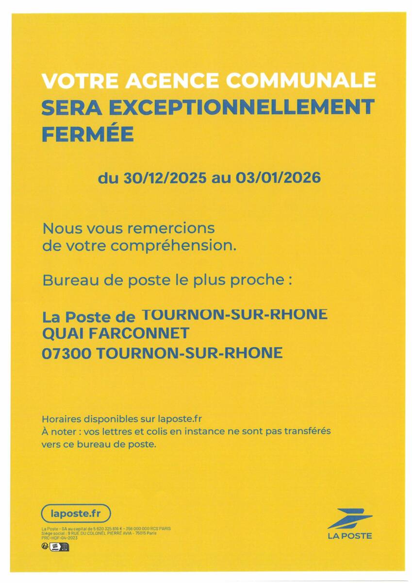 Your town hall / News / FERMETURE AGENCE POSTALE COMMUNALE