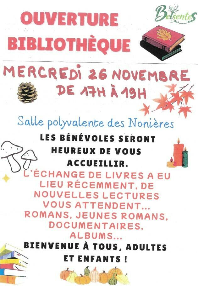 Bibliothèque : Ouverture décallée au mercredi 26 novembre