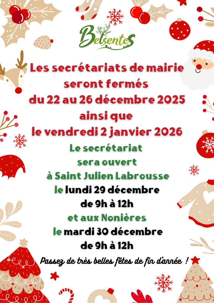Annule et remplace - Fermeture du secrétariat - Noël 2025