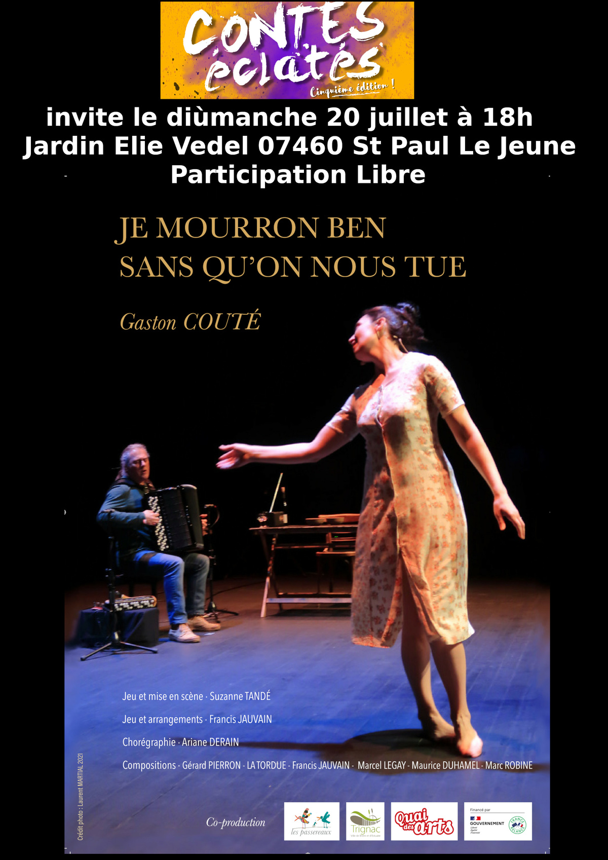 Spectacle sur les textes de Gaston Couté , de et apr Suzanne Tandé et Francis Jauvain le dimanche 20 juillet à 18h, au jardin Elie Vedel.