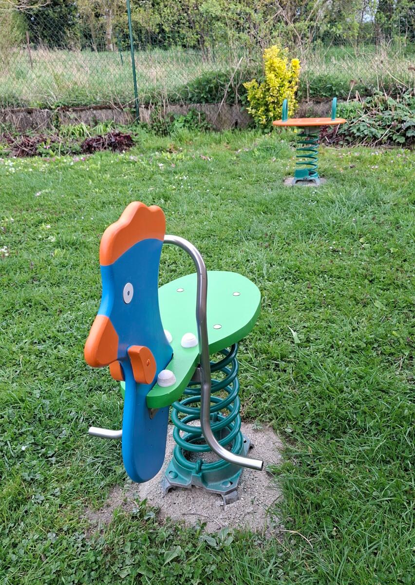 Juste à temps pour les vacances de printemps, les jeux remis à neuf, sont en place dans le jardin de la mairie 🤩