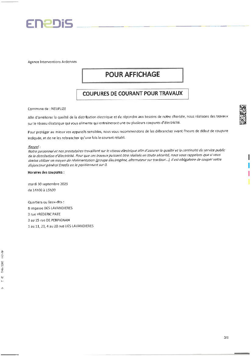 Enedis procède actuellement à des travaux sur le réseau de notre commune occasionnant des coupures.