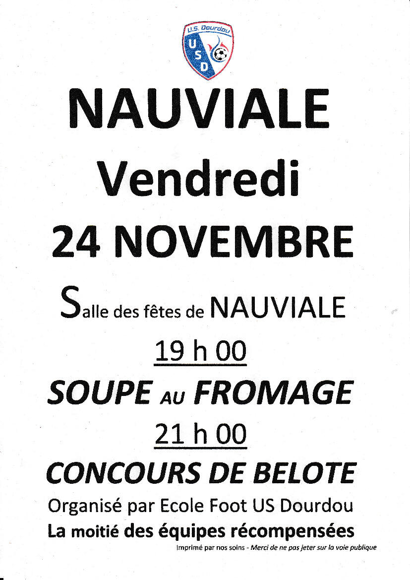 L'US Dourdou organise un concours de belote le 24 Novembre à Nauviale.
