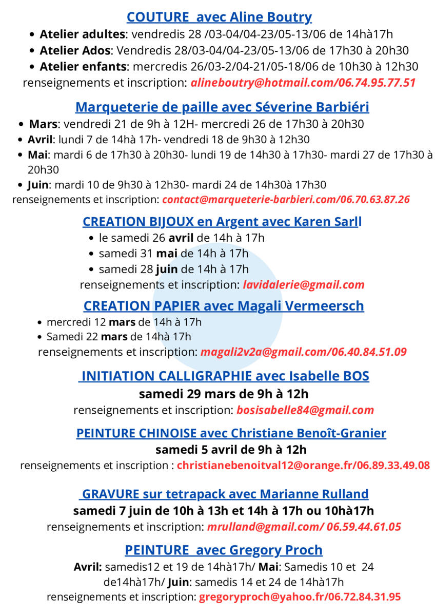 Ci-joint le programme des différents ateliers qui vont se dérouler à Saint-Cyprien à l'étage de la bibliothèque.