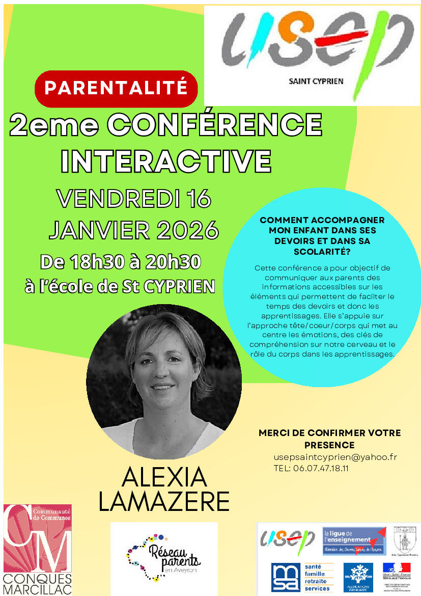 L'Usep Saint-Cyprien organise une 2e conférence interactive le 16 Janvier de 18h30 à 20h30, école communale.