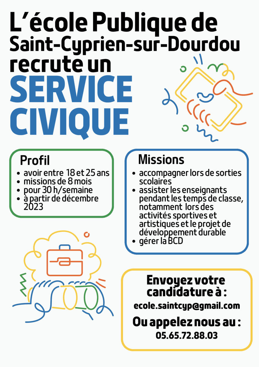 L'école publique de Saint-Cyprien recrute une personne dans le cadre d'un service civique.