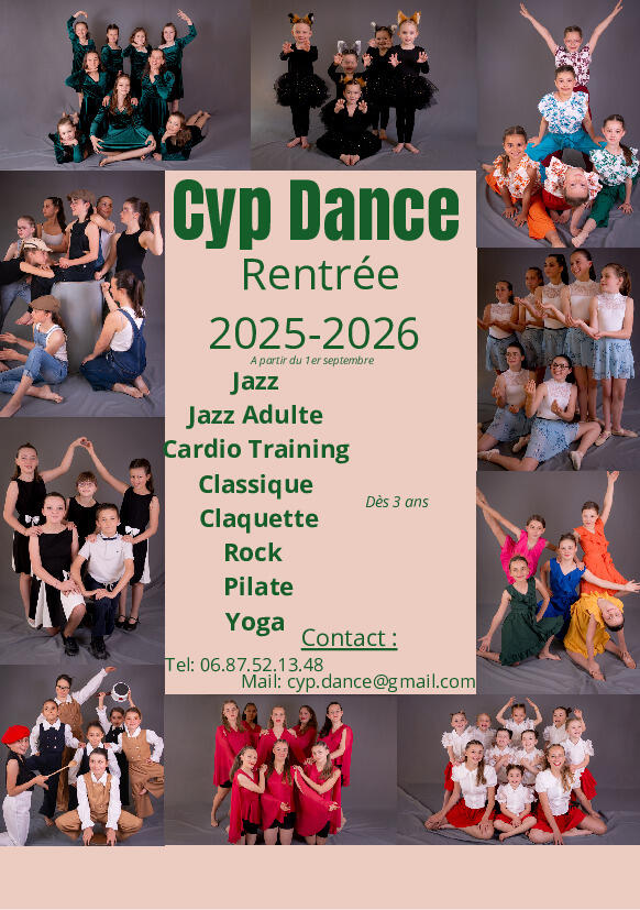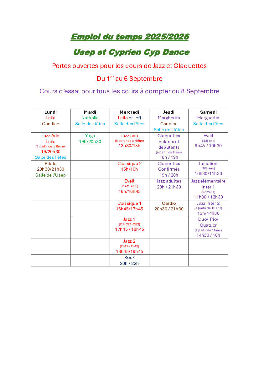 Veuillez trouver ci-joint le programme de Cyp Dance à compter du 1er Septembre avec les horaires.