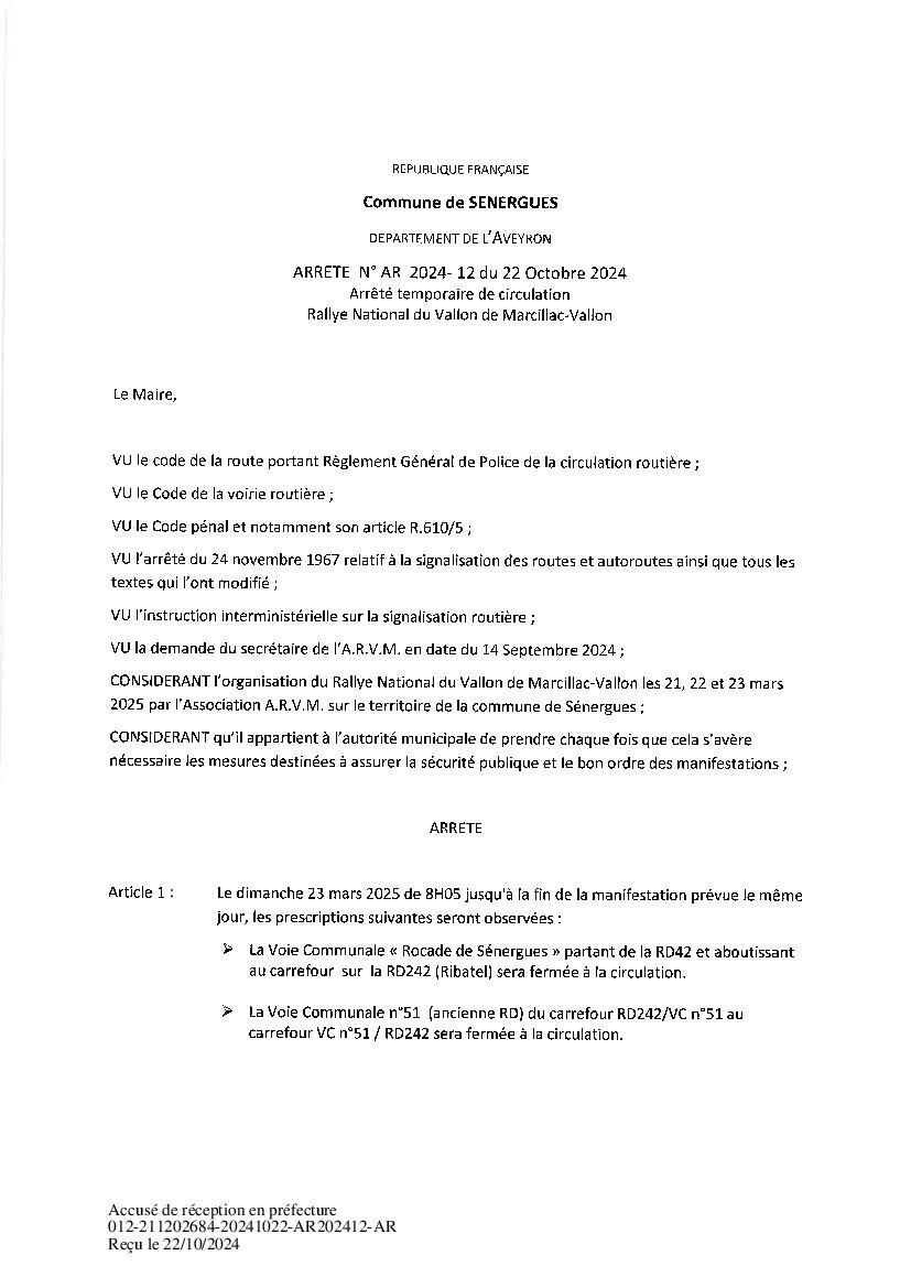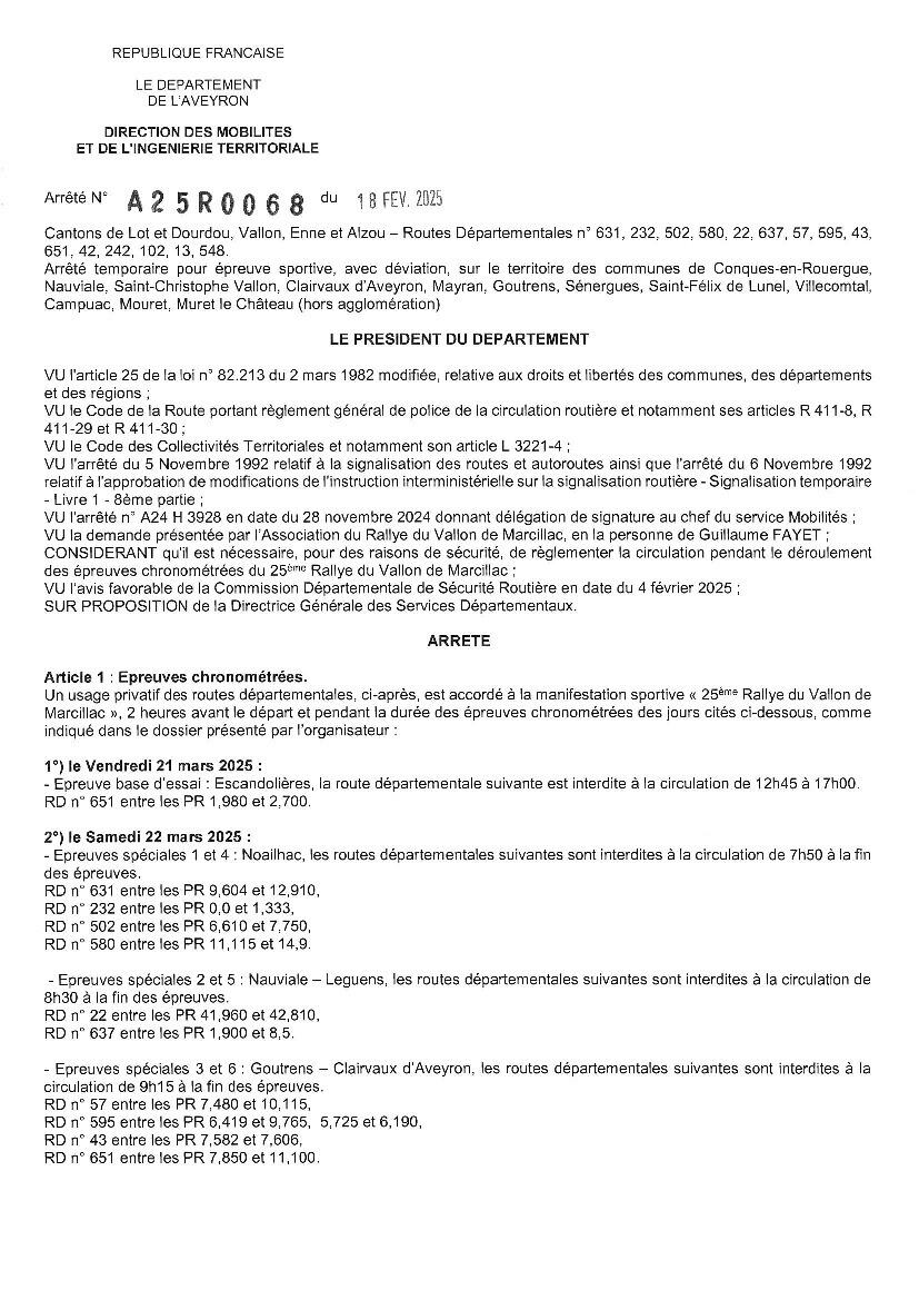Your town hall / News / Info Passage du Rallye du Vallon de Marcillac - 23.03.2025