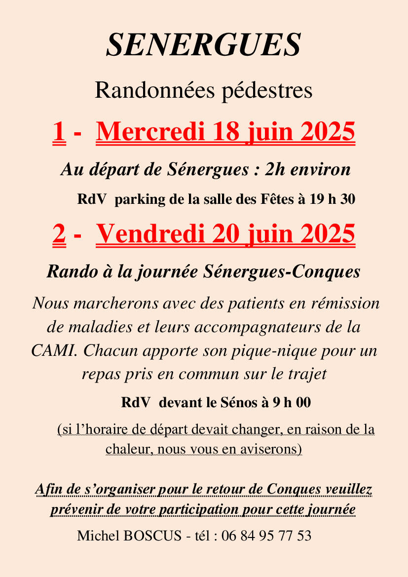 Randonnée Pédestre - Sénergues - 18 et 20 Juin 2025 6/17/25 Avis aux amateurs.... Source : Mairie de Sénergues